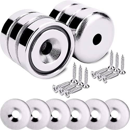 Sensei 6 st neodymium-försänkta hål magnet 16 x 5 mm för skruv, lastkapacitet 6 kg + i paketet 6 stålbrickor + 12 skruvar