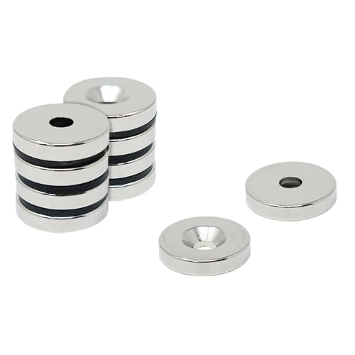 Neodymmagnet för konst, hantverk, modelltillverkning, gör-det-själv, hobbyer, kontor och hem – 25 mm diameter x 5 mm tjock x 6,0 mm c/handfat – 11,2 kg drag – norr