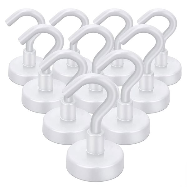 Magnetkrok med neodymmagnet – Ø25 mm, vit, bärkraft 23 kg, 10-pack
