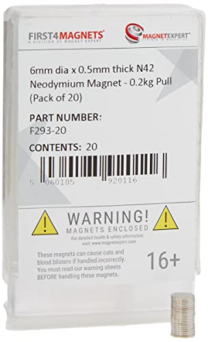 Magnet Expert 6 mm diameter x 0,5 mm tjock N42 neodymmagnet - 0,2 kg tröja (förpackning med 20), silver