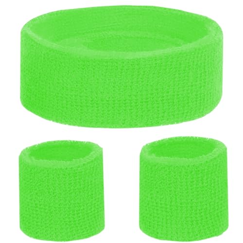 KarneLux Neon svettband set – retro 80-tals 90-tals outfit vokuhila tillbehör med armband och pannband – kostym tillbehör för kvinnor och män (neongrön)