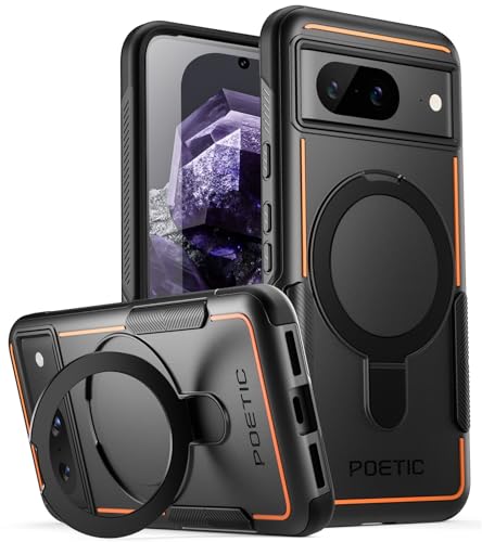 Poetiskt neon MagPro-fodral kompatibelt med Pixel 8 5G 6,1 tum, [Kompatibel med MagSafe] dubbla lager kraftigt kraftigt stötsäkert nytt fodral, magnetiskt ringstativ, svart