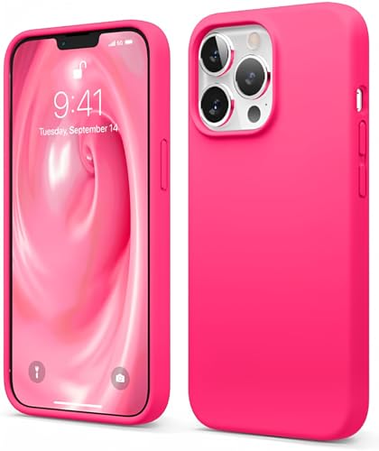 elago Kompatibel med iPhone 13 Pro Max-fodral, flytande silikonfodral, helkroppsskärmskamera skyddande fodral, stötsäker, smalt fodral, reptåligt mjukt mikrofiberfoder, 6,7 tum (neon het rosa)