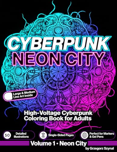 Cyberpunk Neon City: High-Voltage Cyberpunk Coloring Book for Adults: 50 Detailed Illustrations | Large & Medium Line Art | Single-Sided Pages | Perfect for Markers & Gel Pens | Volume 1