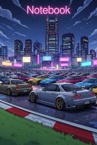 JDM Cars Notebook – Neon City Drift Journal: Japanese Car Lover Gift | Cyberpunk Style Automotive Notebook | 110 Lined Pages