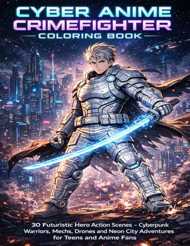 Cyber Anime Crimefighter Coloring Book: 30 Futuristic Hero Action Scenes – Cyberpunk Warriors, Mechs, Drones and Neon City Adventures for Teens and Anime Fans
