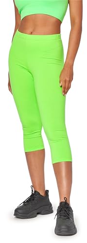 Bellivalini Neon leggings damer korta med söm, gym leggings damer, ljusa byxor damer idealiska som festival outfit damer eller del av ett 80-tals outfit damer BLV50-303, Neon grön, XS