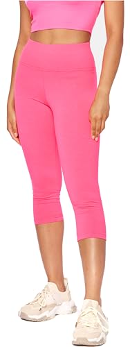 Bellivalini Neon leggings dam hög midja 3/4, gym leggings dam, ljusa byxor dam idealiska som festival outfit dam eller en del av ett 80-tals outfit dam BLV50-298, ROSA, S