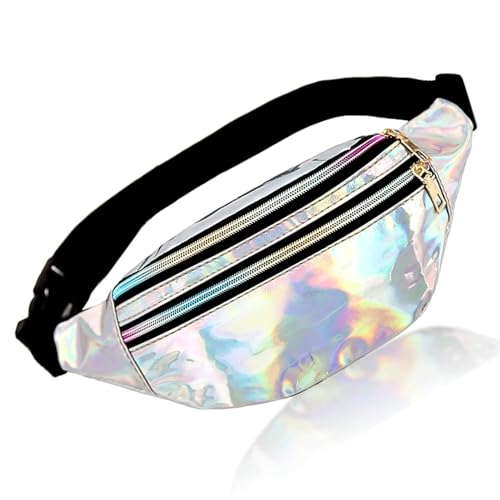 Shiny Holographic Pack, metallisk färg sport vattentät bältesväska neon bältesväska med fickor och justerbart bälte för kvinnor män barn resa löpning festival party (silver)
