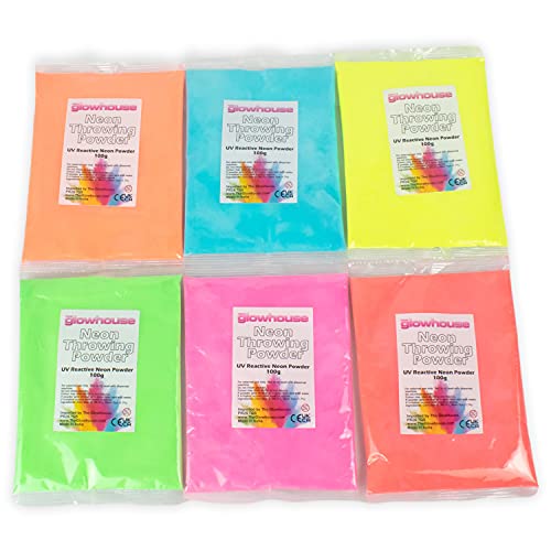 Neon Holi Powder 100 g 6-pack UV reaktiv glöd under svart ljus, gulal pulver holi festival