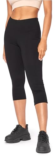 Bellivalini Neon leggings dam 3/4 med söm, gymleggings dam, ljusa byxor dam idealiska som festival outfit dam eller en del av ett 80-tals outfit dam BLV50-302, svart, S
