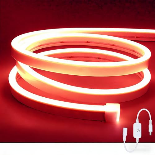 ShineBurky 12V Neon 5M LED-remsa, IP65 Neonljus Vattentät Flexibel för utomhus inomhus, Festival Dekoration (Ingen strömadapter) (Röd)