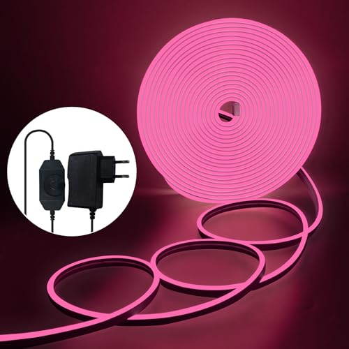 BRIMAX 10M Neon Rosa LED Strip - 1200 Leds, IP65 Vattentät, Mycket Flexibel, DIY Tailoring - 24V Strömförsörjning för Patio, Kök, Sovrum Dekoration
