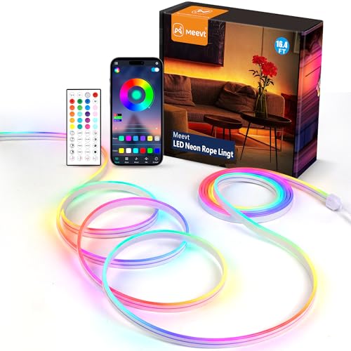 MMEEVT LED-list 5 m, neon, IP67 vattentät, flexibel, RGB, led-remsa med app-styrning och musiksynk, silikon DIY LED-ljusband för sovrum, rum och utomhusdekoration