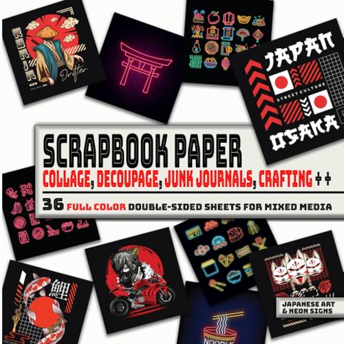 Japanese Art and Neon Signs (36 Sheets) Scrapbook Paper for Mixed Media: Manga Anime Themed Decorative Paper for Cut Out and Collage, Scrapbooking, ... Card Making & All DIY Craft Projects