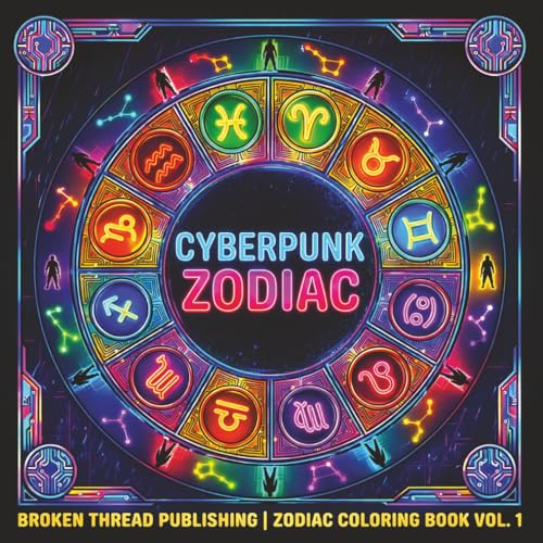 Cyberpunk Zodiac: Neon Futuristic Signs Adult Coloring Book | 12 Signs | The Good, The Shadow, and a Mandala For Each | Relax and Color the Chaos