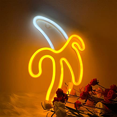 ENUOLI Banana Neon Light Signs LED Banana Neon Sign Vägglampa Drivs av 3 AA Batteri/USB Laddning LED Banan Nattljus för sovrum Barnrum Bröllopsfödelsedagsfest dekor