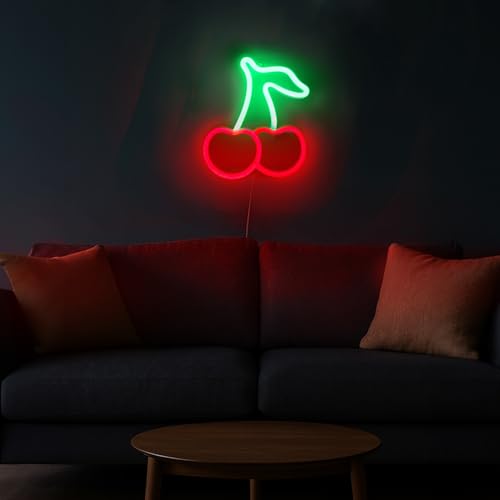 ENUOLI Neonskylt med körsbär, LED neonljus, röd neonskylt, neon-vägglampa, USB- eller batteridriven neonljusskylt, ljus, väggkonst, dekor för barn, sovrum, neonbelysning för julfest, bröllop, bar
