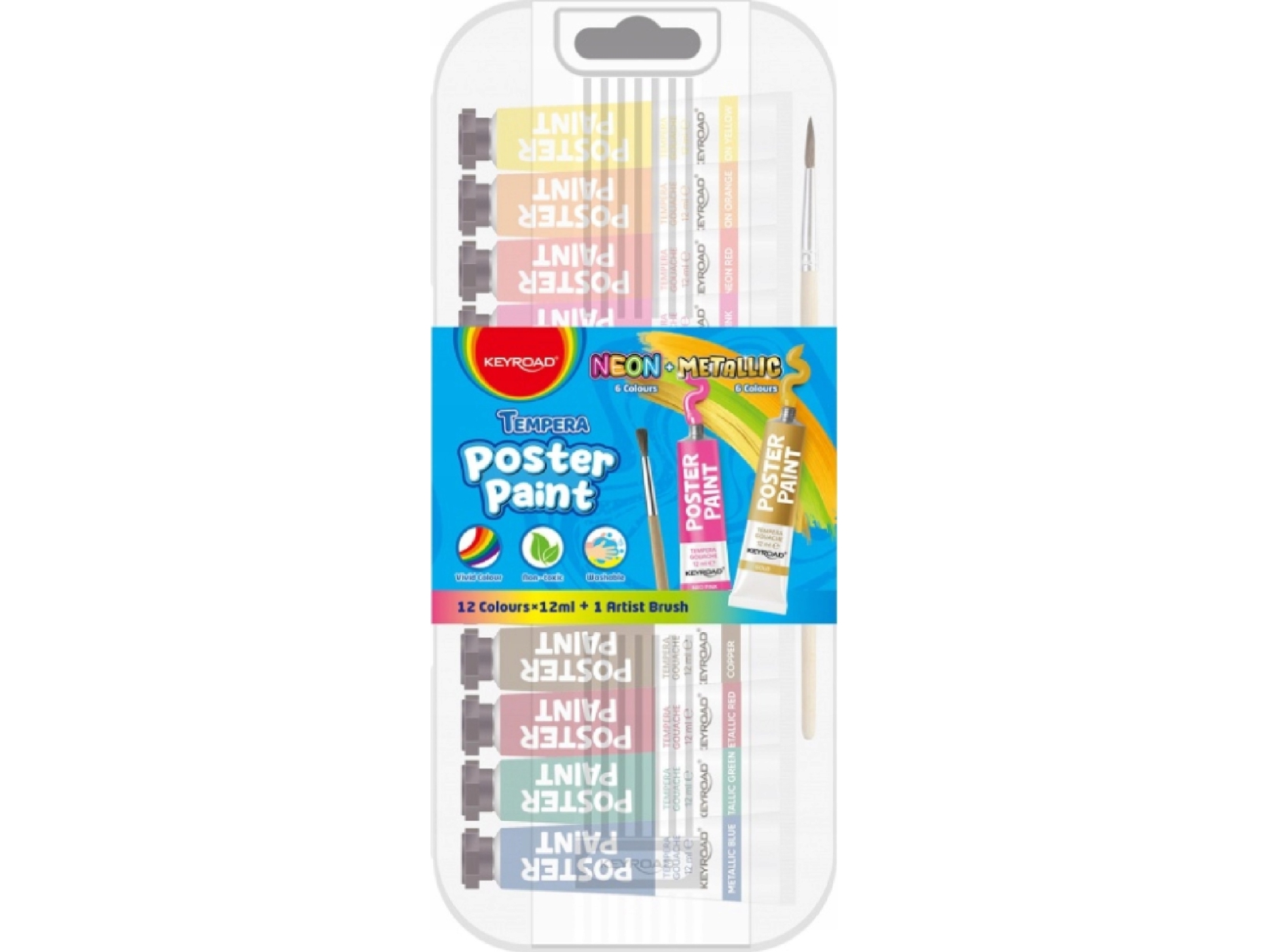 Keyroad Keyroad Posterfärger, 12X12ml, Gratis Pensel, Blandning Av Metallic- Och Neonfärger