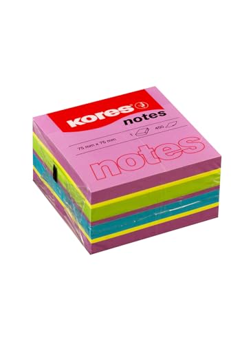 Kärnor klisterlappar kubvår, 4 neonfärger, 75 x 75 mm, 1 kub med 450 ark