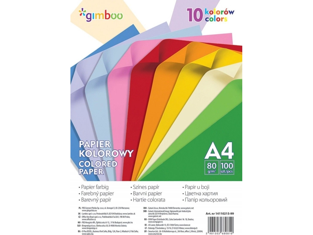 Gimboo Färgpapper Gimboo, A4, 100 Ark, 80 G/M², 10 Neonfärger