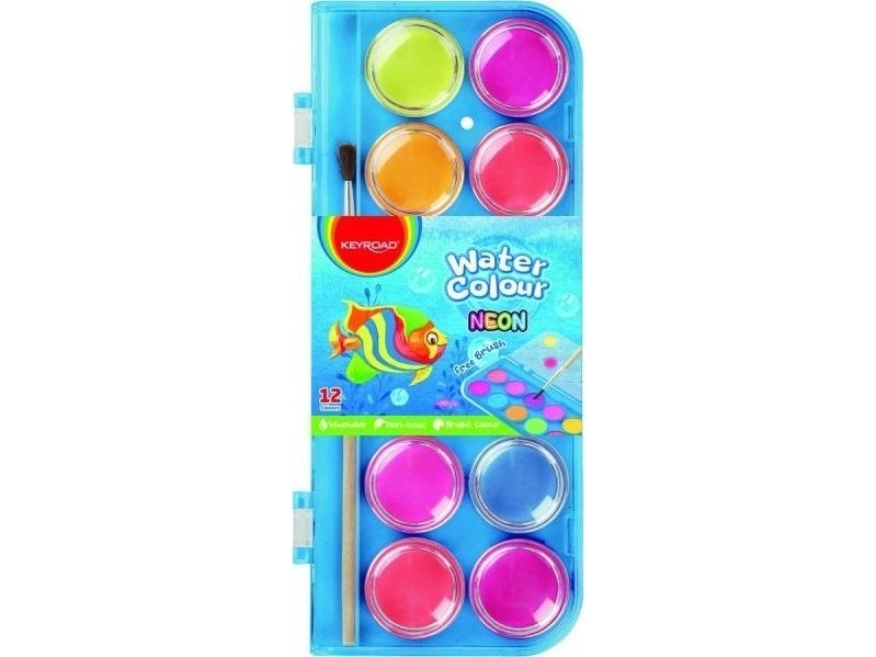 Keyroad Keyroad Akvarellfärger, Med Pensel, 12 Neonfärger, Hängbricka