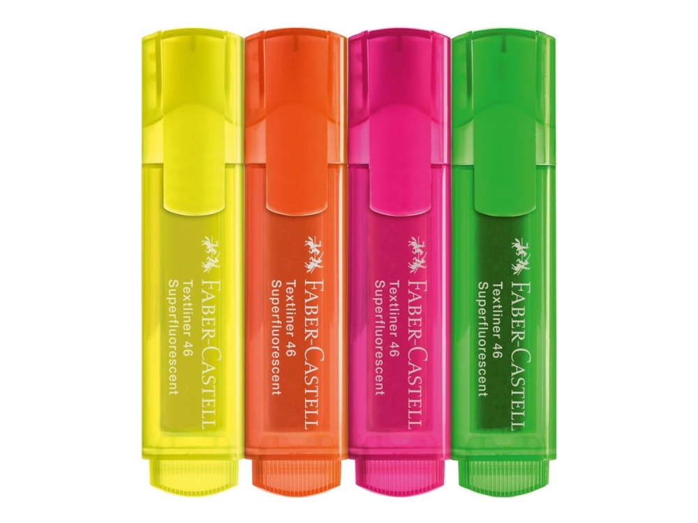 Faber-Castell Textliner 46 Superfluorescent - Överstrykningspenna - Blandade Klara Neonfärger - Genomskinlig - Vattenbaserat Bläck - 1-2-5 Mm (Paket Om 4)