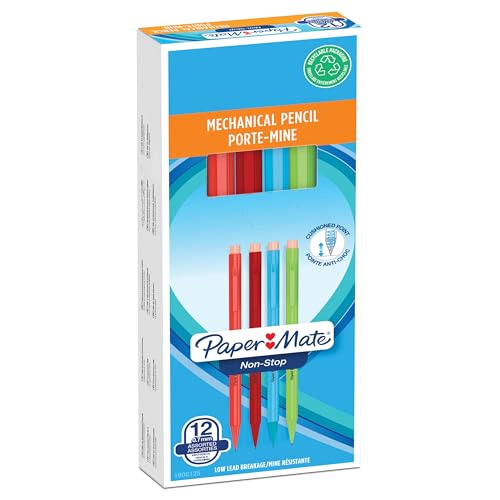 Paper Mate Non-Stop Stiftpenna | 0,7 mm | HB #2 | Skaft i flera neonfärger | 12 stycken