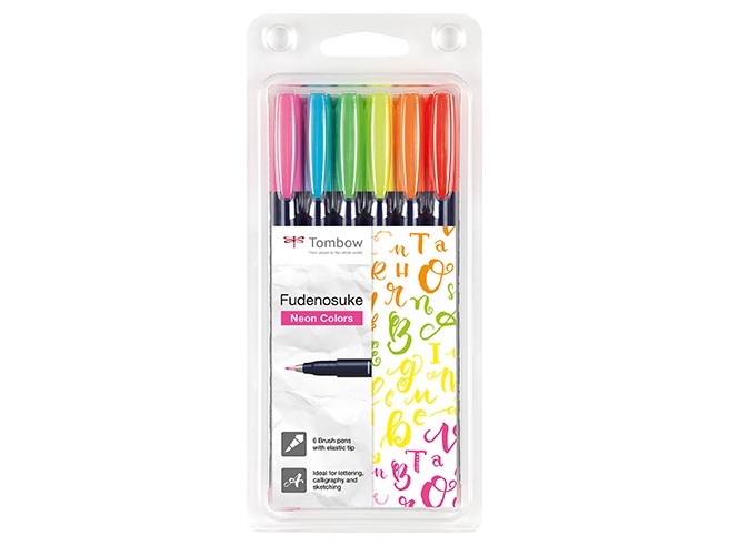 Tombow Brush Penna Fudenosuke Hårda Neonfärger (6 St.)