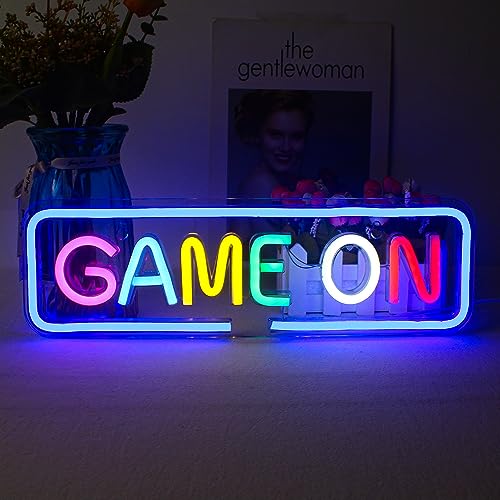 Game On neonskylt, gaming-neonskyltar för väggdekor, USB-driven LED-upplyst skylt för gamerrum, tävlingsspelare, spelzon, present till gamers (flerfärgad)