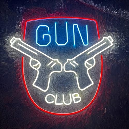 FINOTI Pistol neonskyltar pistolformade LED neonlampor hängande konst nattlampa pistollampa för spelrum väggdekor gåva USB med strömbrytare, A