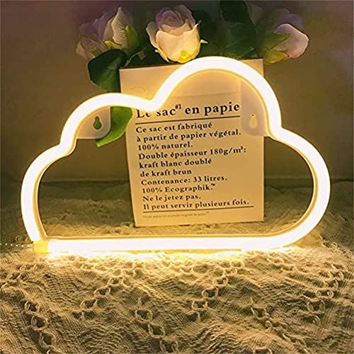 Moln neonskyltar LED molnlampa för väggdekor USB eller batteriskyltar för sovrum födelsedagsfest jul vardagsrum barn bröllop flickor dekoration (varm vit)