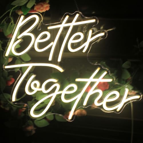 Better Together neonskyltar, neonskyltar i varmvit LED, för möhippa, väggdekoration, förlovning, årsdag, fest, 5 V, USB-strömförsörjning (40 x 30 cm)
