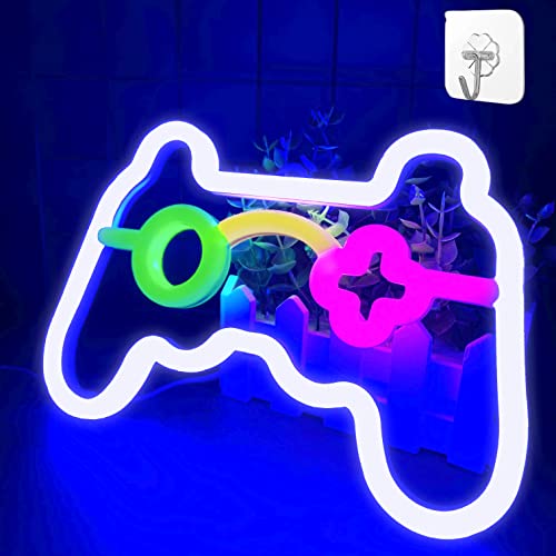 JEMESI Gamer neonskyltar, styrenhet form ljus spel rum dekorspel neontecken för tonåring pojkrum dekoration, dimbart spel neonljus för väggdekor bästa gamer-presenter för pojkar, barn