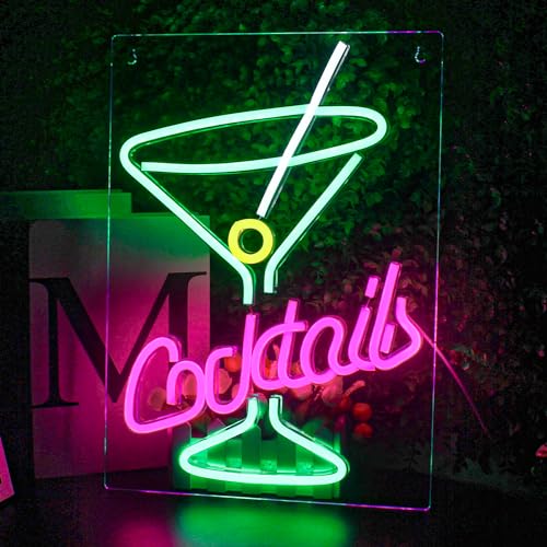 Looklight Cocktails neonskylt cocktail neon ljus bar neonskyltar för väggdekor rosa grön LED neonskyltar USB cocktailglas neonljus skyltar för hem bar klubb kök hotell bröllopsfest dekor gåva