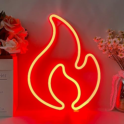 Ineonlife Flamma neonskyltar för vägg röd neonljus LED-skylt lyser upp eld neon nattlampa för sovrum bar restaurang butik heminredning