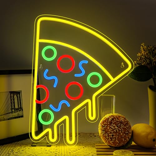 Pizza-neonlampa i akryl, LED-skylt, matform, neonskyltar för vägg, gul LED, pizza, neonljus, skylt för sovrum, restaurang, kök, fest, dekoration