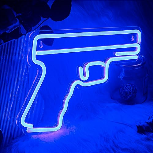 FINOTI Pistol neonskyltar pistolformade LED neonlampor hängande konst nattlampa pistollampa för spelrum väggdekor gåva USB med strömbrytare, I