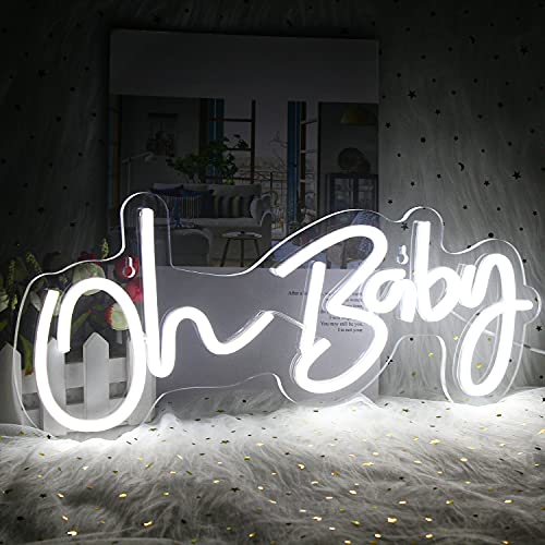 Oh Baby neonljus vita LED neonskyltar USB-drivna ljusskyltar dimbara bokstäver baby neonskylt för babyrum sovrum bröllop födelsedagsfest present väggdekoration