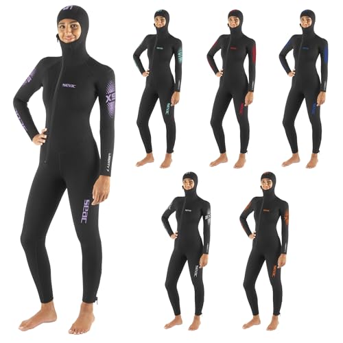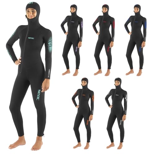 SEAC Liberty Long Lady 7 mm – Våtdräkt i ett stycke för kvinnor med integrerad huva – slitstark neopren med Supratex-förstärkningar på knä, axlar och baksida – färgade storlekar