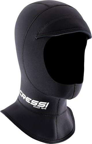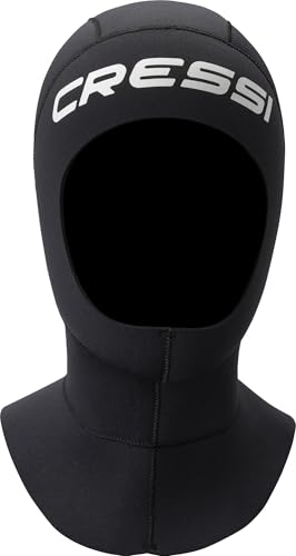 CRESSI fjädrande lång huva 3 mm S – unisex huva med utökad krage i svart dubbelfodrad 3 mm neopren för dykning snorkling och vattensporter, S