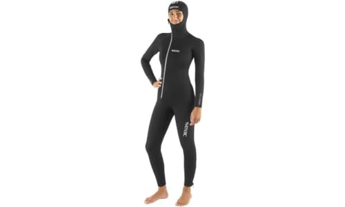 SEAC Club Lady, 7 mm Neopren våtdräkt med integrerad huva, Powertex axelskydd, knäskydd och botten för kvinnor, Svart, XL