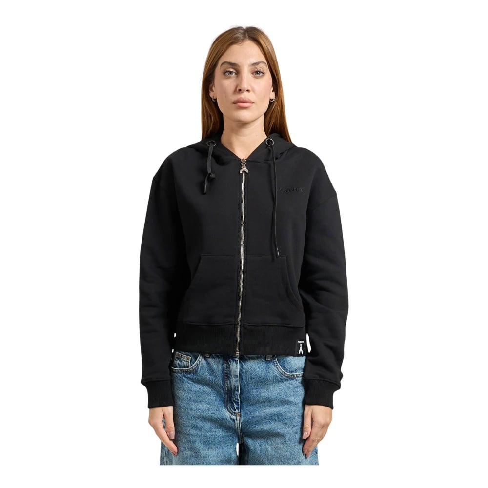 Patrizia Pepe, Sweatshirts & Hoodies , Dam, M, Svart Neopren Sweatshirt med Fullzip Huva