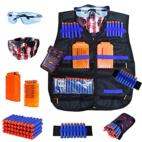 Worker Taktisk väst för barn, set för Nerf Guns N-Strike Elite serie med 40 kulor, påfyllning, pilar, 2 omladdningsklämmor, dartpåsar, taktiska masker, handarmband och skyddsglasögon för pojkar,