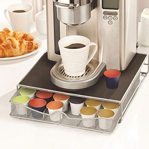 Bakaji Förvaringsbehållare för kapslar och kaffebryggare Nespresso Nescafè Lavazza i metall avtagbar låda silver och svart topp (33 x 32 x 7,5 cm)