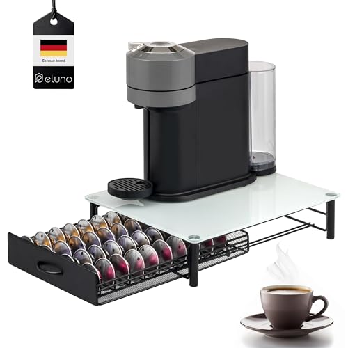eluno Kapselhållare för 40 x Nespresso Vertuo, lådlåda, glasmaskinstativ metall och glasplatta, kaffekapselbox, kapseldispenser ca 33,5 x 9 x 41 cm (B/H/D) (svart)
