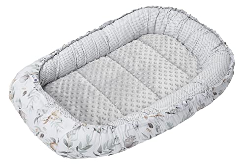 Medi Partners Babynestset för nyfödda - 100x60x15 cm 5-delat bärbart nest vändbart 100% bomull (Skog med mynta Minky)