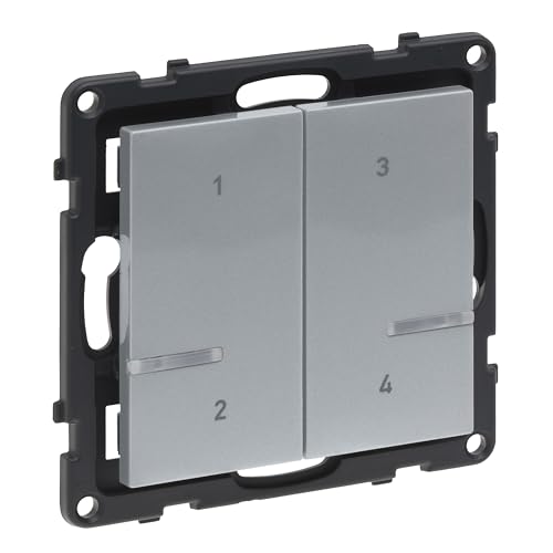 LEGRAND, SEANO med Netatmo scenknapp 4-faldig, hämta 4 individuella scenarier, Home + Control-app, 3 V-knappceller som ingår (8 års livslängd), smart hem, färg: aluminium, 765735