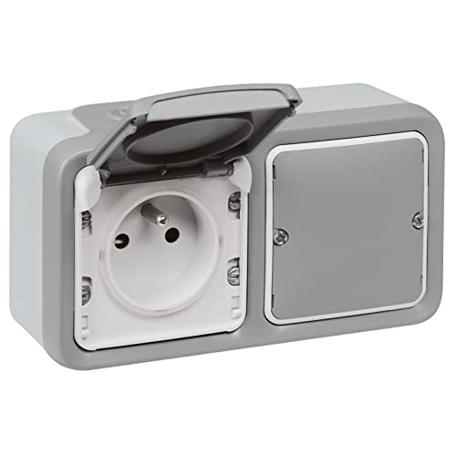 Plexo smart plugg (IP55) med Netatmo (mätfunktion, förbrukningsspårning, meddelandeleverans) - komplett hölje för Sailli-montering med 16a jordkontakt - grå - 199271 - Legrand