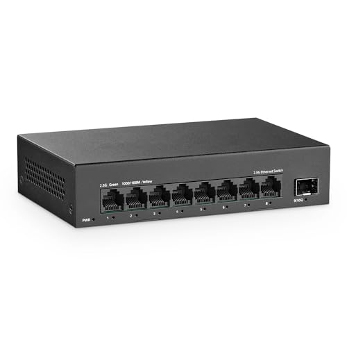 YuLinca 8-port 2,5G ohanterad switch, 8 x 2,5 GBASE-T-portar med 10G SFP+, 60 Gbps Switching kapacitet, fläktlös plug and play 2,5 Gb Network Switch
